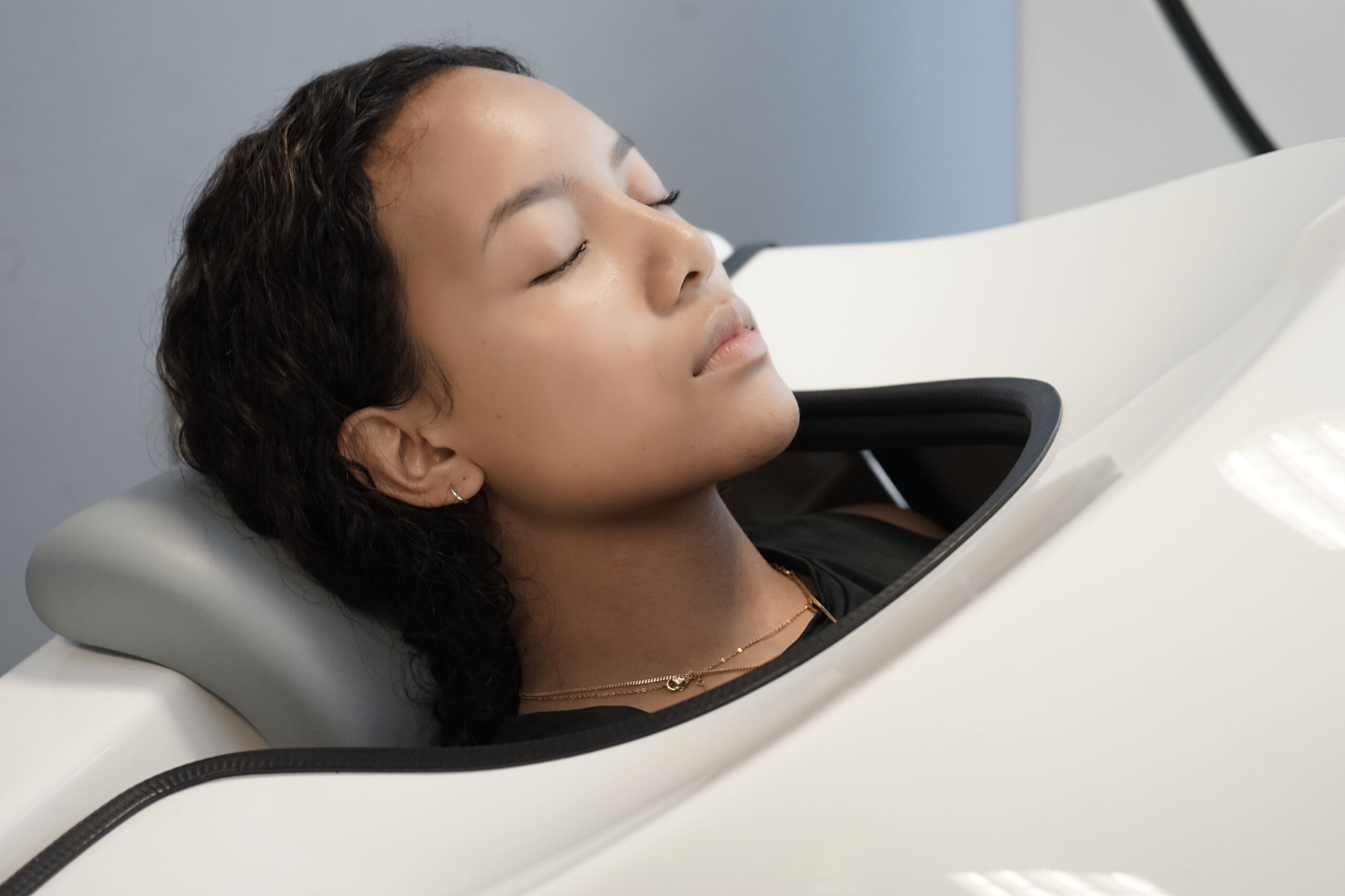 De ozoncabine is als een overdekte ligbed (zie afbeelding) waar u relaxed in plaats neemt. Uw hoofd ligt natuurlijk buiten de cabine en binnenin wordt het heerlijk 38°C. Een ozoncabine behandeling bij Slimmer duurt 15 minuten en werkt tot 48 uur na. Dus al met al een weldaad voor uw huid en pure verwennerij als afsluiting van je inspanningen.